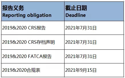 開(kāi)曼公司/開(kāi)曼群島FATCA和CRS申報(bào)截止日期(2019&2020):