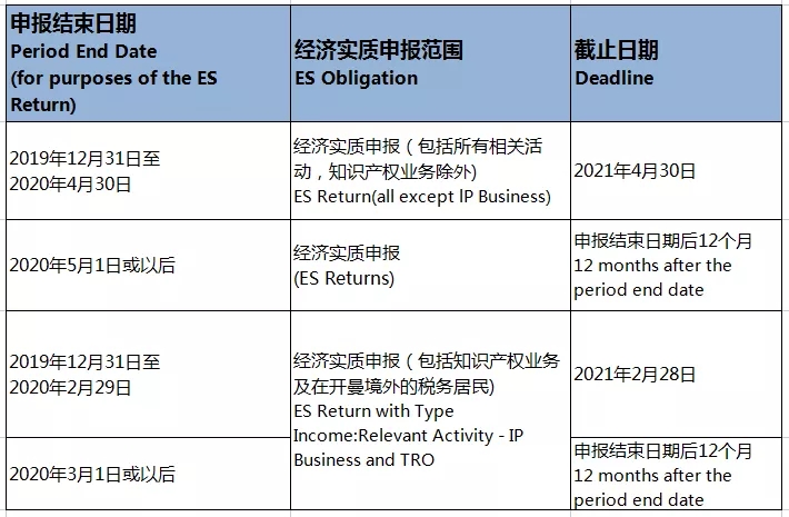 關(guān)于提交經(jīng)濟(jì)實(shí)質(zhì)申報(bào)表(ES Return)的截止日期總結(jié)如下:
