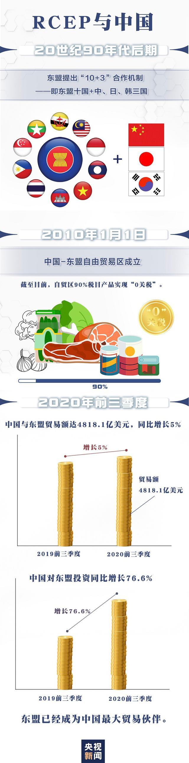 11月15日,區(qū)域全面經(jīng)濟伙伴關(guān)系協(xié)定(RCEP)正式簽署,包括東盟10國+5國(中國、日本、韓國、澳大利亞、新西蘭),涵蓋全球30%以上人口、GDP、貿(mào)易和投資的最大自貿(mào)區(qū)誕生,參與國之間超過90%貨物貿(mào)易將實現(xiàn)零關(guān)稅。